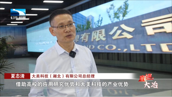 大美科技(湖北)有限公司总经理 夏志清:借助高校的应用研究优势和大美科技的产业优势,合作的领域主要是半导体新材料和AI显示两个方向,下一步我们会推动AI显示的应用。