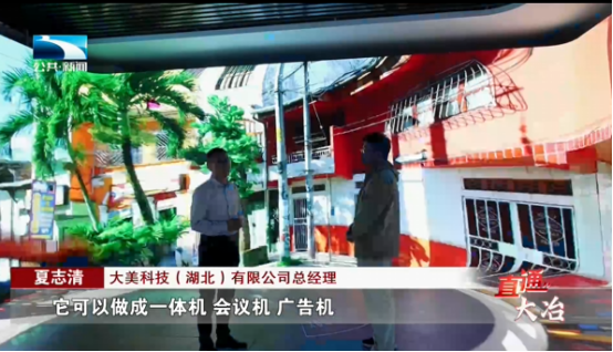 大美科技(湖北)有限公司总经理 夏志清:这款目前应用在户内显示,它可以做成一体机、会议机、广告机 ,也可以做成家庭影院,像这款式会做成2K或者4K的家庭影院。