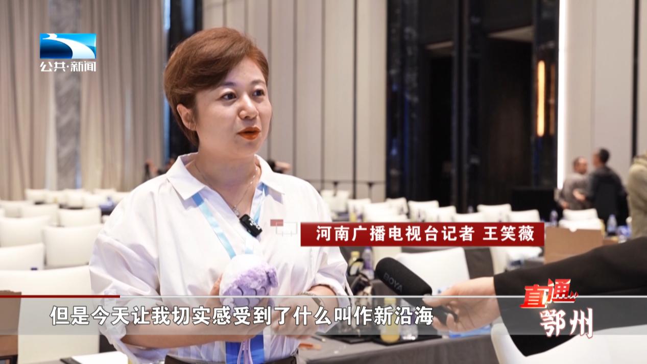河南广播电视台记者 王笑薇:我们中部省份不靠海不沿边,但是今天让我切实感受到了什么叫作新沿海,我们作为中部媒体的一员,有义务去报道好我们中部地区这块,“牛肚子”的经济提升和开放程度。