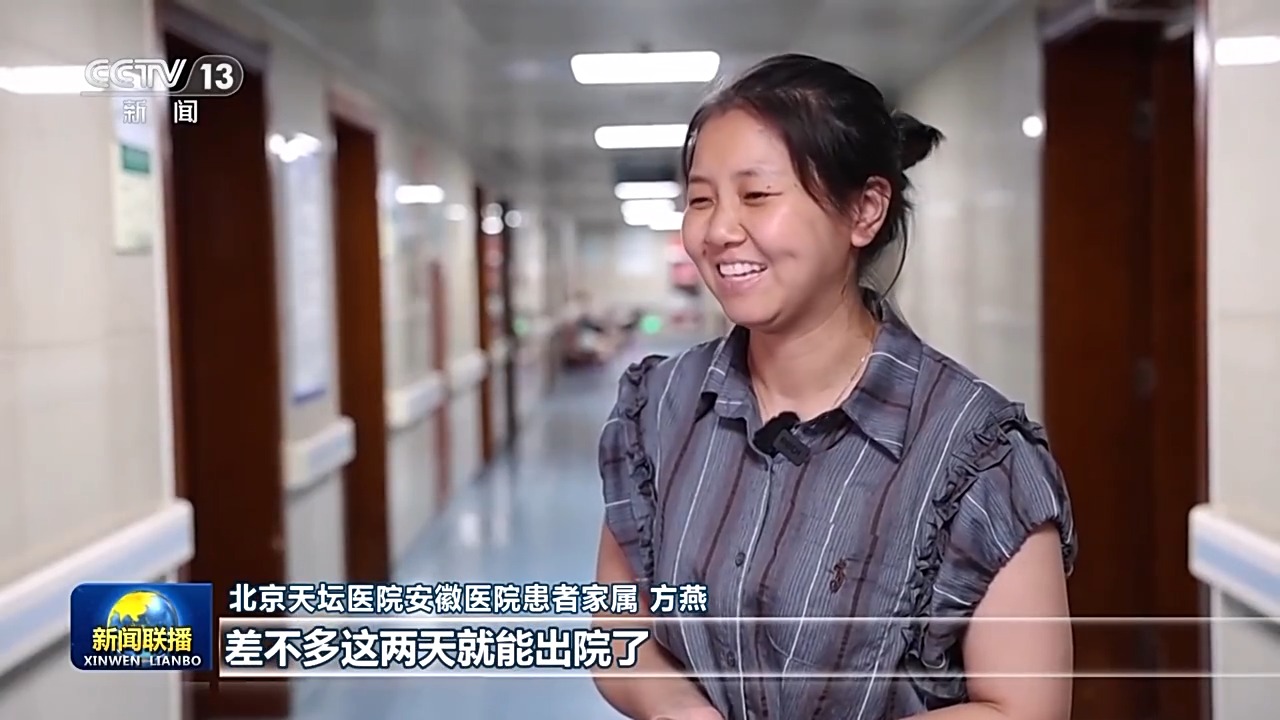 北京天坛医院安徽医院患者家属 方燕:天坛医院的医生在这里,确实给我们安徽的老百姓带来了很大的方便,手术效果挺好的,差不多这两天就能出院了。