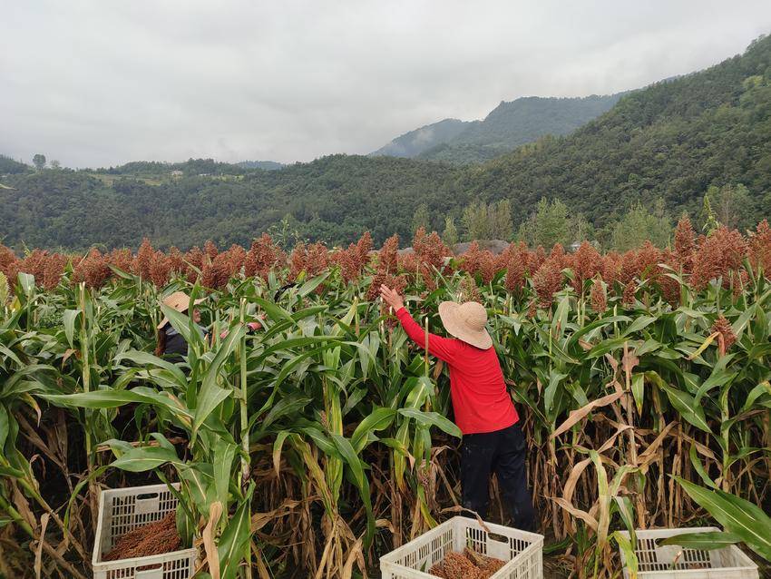 秋风拂过山峦,湖北省房县中坝乡的坡地便铺开了漫山遍野的赭红。糯高粱垂着沉甸甸的穗头,在阳光下泛着琥珀般的光泽,像一群微醺的舞者,俯身轻吻这片养育它们的土地。空气中浮动着微甜的香气,仿佛连风都提前浸透了酒意。