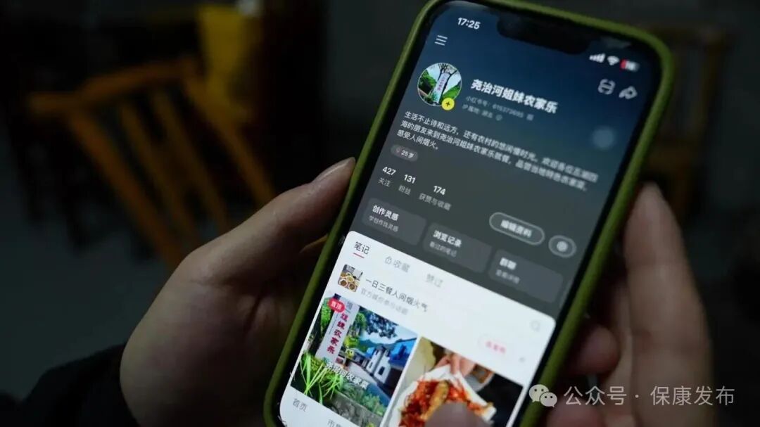 “现在是自媒体时代,我注册了一个小红书账号,平时发一些动态来做宣传。”农家乐经营者饶敏说。
