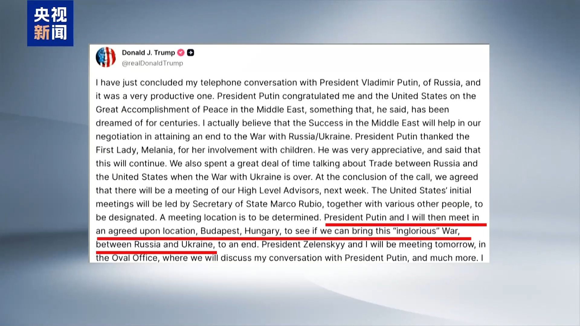 特朗普表示,他与普京每次谈话都很愉快,但没有取得进展。虽然看上去双方无法达成目标,但未来会再次举行会晤。