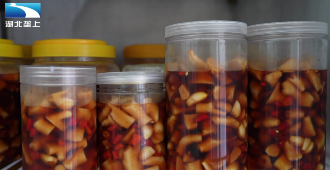 在来凤县一家食品加工店,工人们正在对新鲜生姜进行分拣、清洗和加工。车间里弥漫着生姜特有的辛香,一坛坛糟姜、糖醋姜整齐排列。