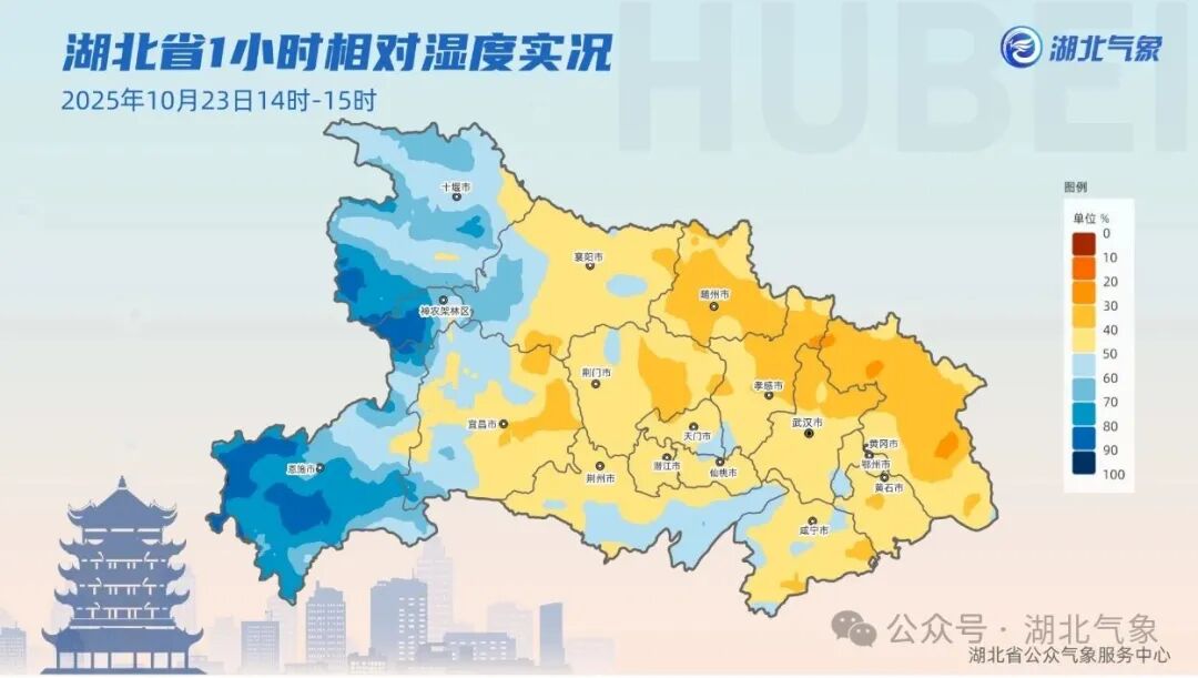 10月24日08时-25日08时,鄂西北西部、鄂西南西部多云转小雨;其他地区多云到阴天。最高气温鄂西北12~16℃、其他地区16~21℃,最低气温9~12℃,偏北风2到3级、阵风4到6级。