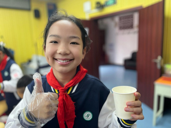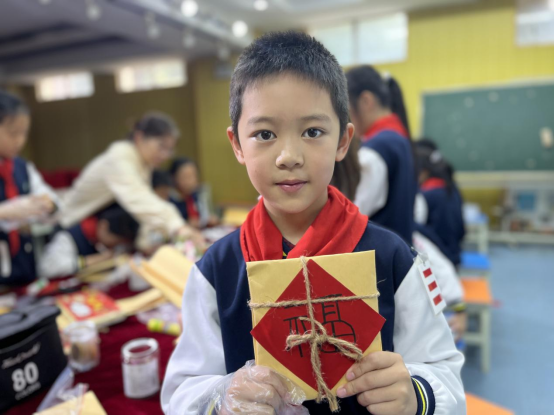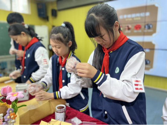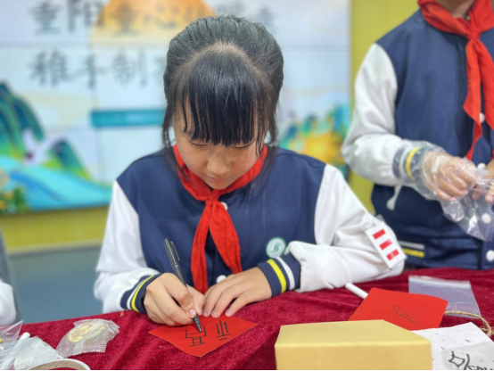 “独在异乡为异客,每逢佳节倍思亲。”504班左一诺一边制作茶包,一边吟诵重阳经典诗句。她分享道:“我爷爷也喜欢喝菊花茶,上次我感冒,他还给我煮了菊花红枣水。”小朋友们自己抿一口,甜丝丝的,“特别好喝,爷爷奶奶们肯定会喜欢的!”孩子们将对老人的牵挂与对传统文化的理解,细细密密地包进每一个茶包中,使每份礼物都承载起纯真的爱意。