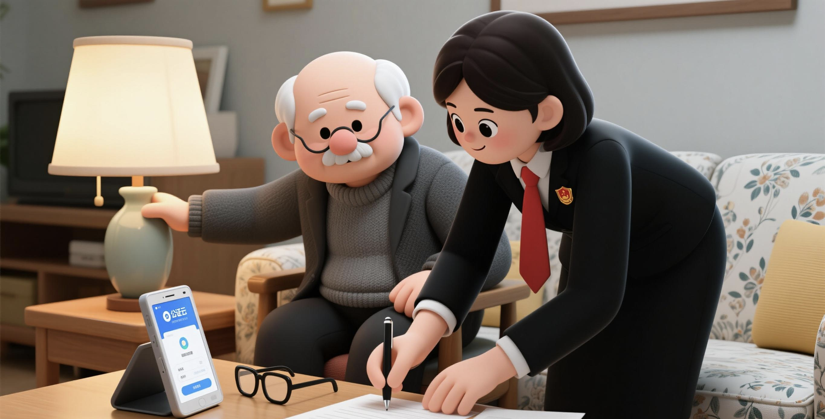 比起生命尊严的规划,85岁的王爷爷面临的难题更实际:关节不好走不动路,想立遗嘱分配财产,却怕出门折腾。公证员为他启动“高龄老人上门服务”绿色通道,从核对身份、一条条讲解遗嘱条款,到陪着王爷爷确认签字,全程慢声细语。王爷爷的儿子感激道:“本以为公证是件麻烦事,没想到你们把服务送到家,解决了全家的一块心病。”