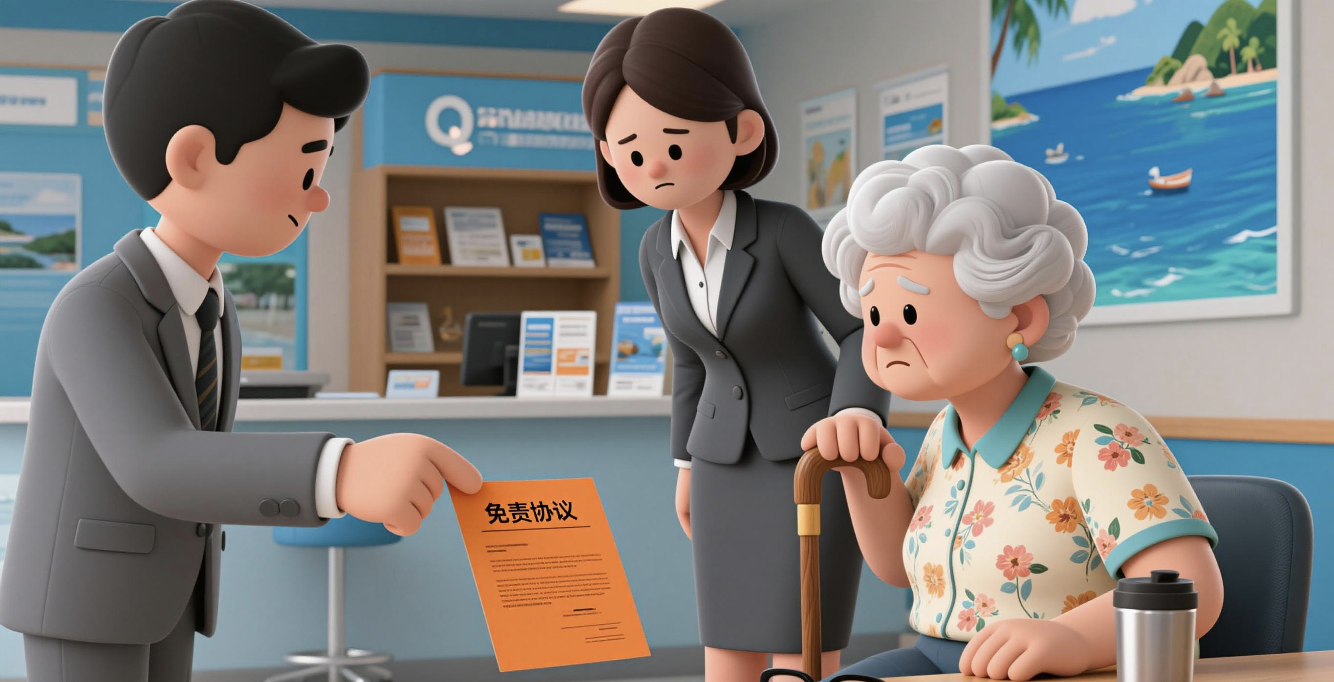 工作人员提出,签订免责协议后,旅行社还是建议有家人或低龄老人陪同旅行。