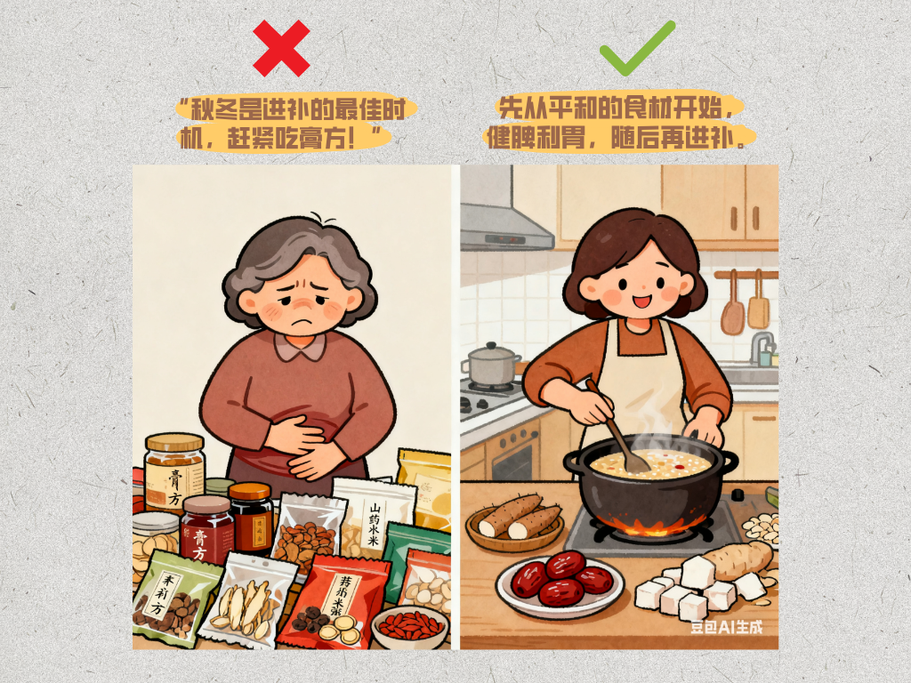 我们的脾胃就像身体的 “后勤部”,饮食都要靠它们来消化吸收,才能转化为有用的免疫力。如果本身脾胃虚弱,再吃滋腻的膏方,反而会让补品堆在身体里无法消化、化为湿气,让人感觉更疲惫、胃口更差。
