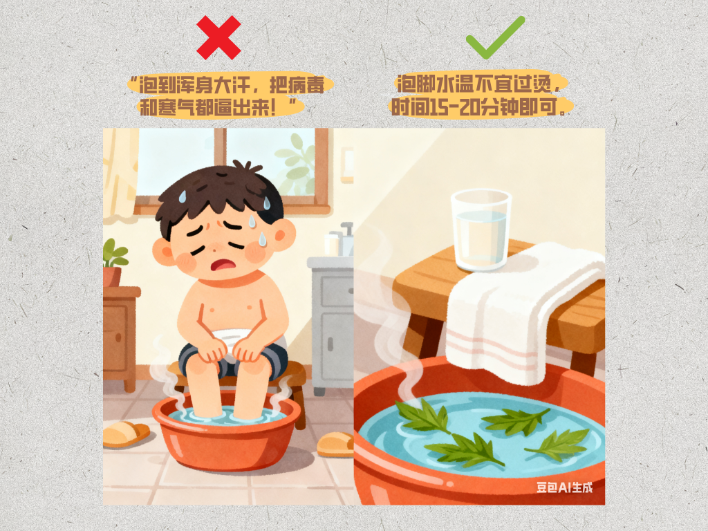 泡脚水温不宜过烫,时间15-20分钟即可,感觉到后背有一层细密的微汗就立刻停止,擦干身体,避免吹风。