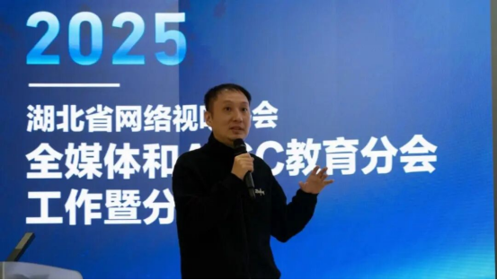 湖北省网络视听协会副会长兼秘书长陈志义在发言中阐述了协会在AIGC时代的责任与使命。“我们不仅要站在技术浪潮的前沿,更要成为价值的守护者、创新的推动者。协会的使命是搭建平台、凝聚共识,推动行业健康有序发展。”他强调,协会将充分发挥桥梁纽带作用,促进校企合作、产教融合,构建协同创新的产业生态。