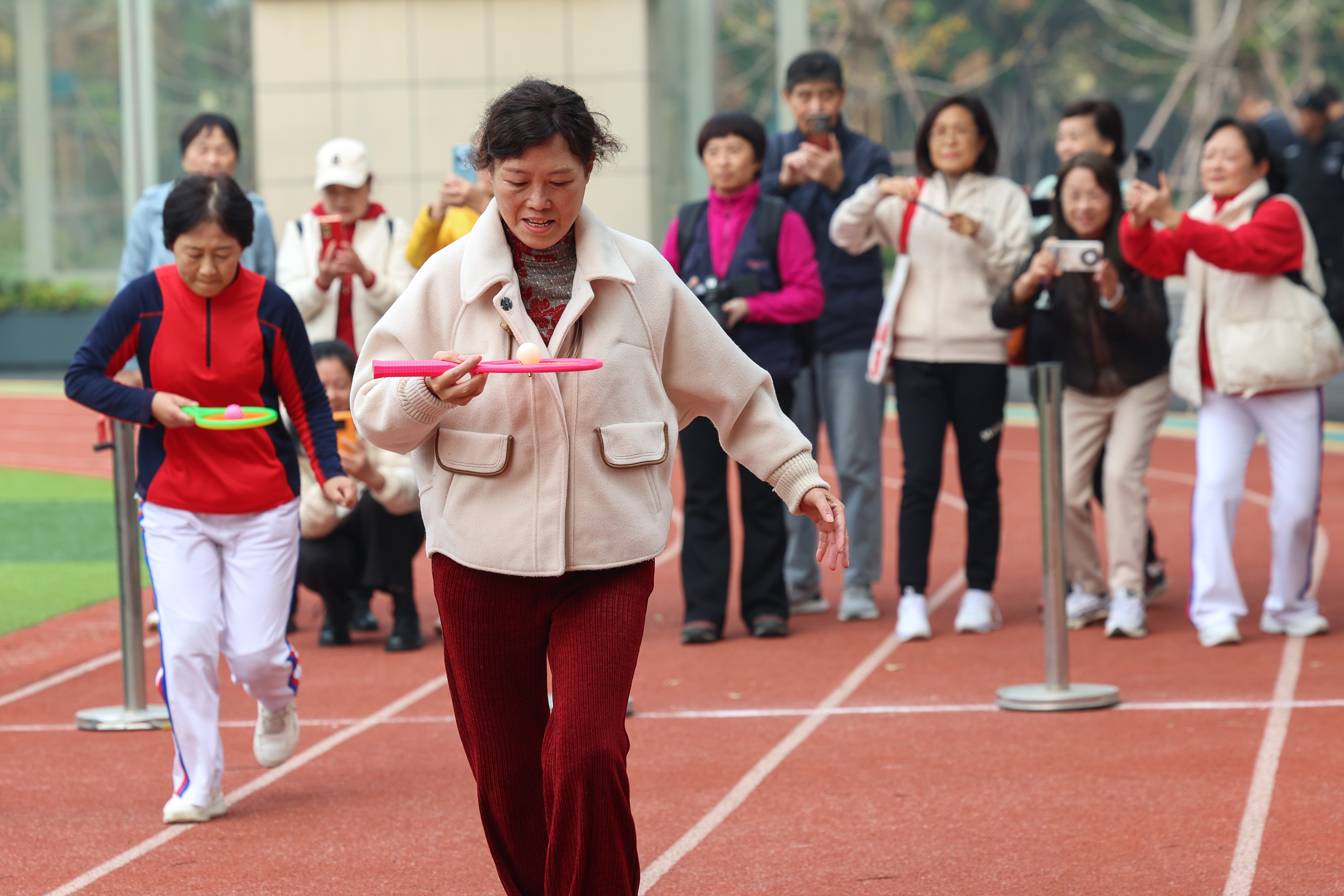 运动会设置了传递呼啦圈、赶球接力、跳绳、象棋、掼蛋等共14个比赛项目,吸引了3500余名学员报名参赛,参赛规模创历史新高。在运动会上,全体运动员秉持“友谊第一、比赛第二”的原则,安全、有序地参与比赛。比赛现场,十二支方队精神抖擞,尽显银龄活力;暖场展演精彩纷呈,志愿者与后勤人员全程坚守岗位,为运动会的顺利进行保驾护航,大家在运动中收获健康、收获幸福、收获友谊。