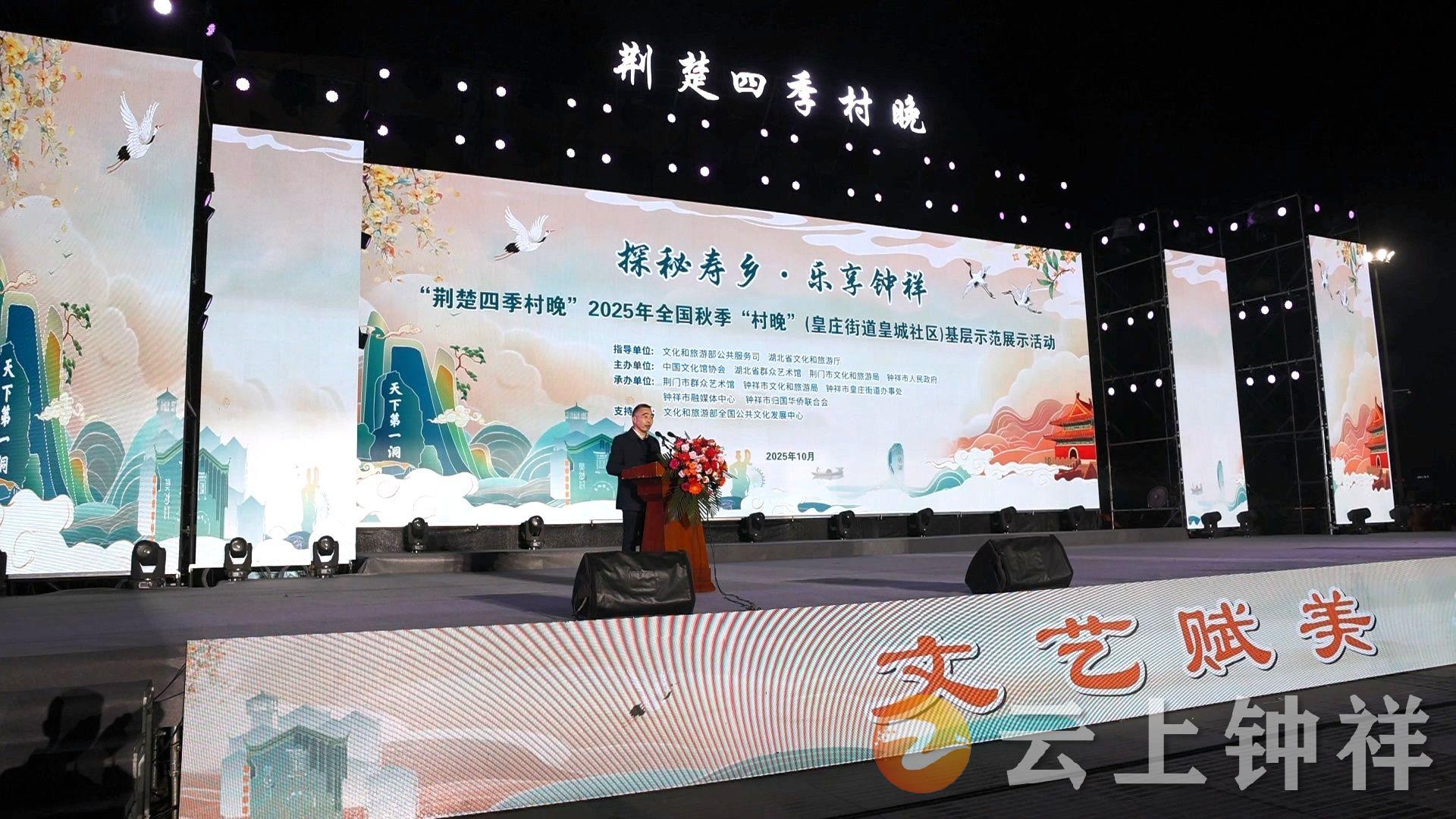 10月24日晚,由文化和旅游部公共服务司、湖北省文化和旅游厅指导,中国文化馆协会、湖北省群众艺术馆、荆门市文化和旅游局、钟祥市人民政府主办的“荆楚四季村晚”2025年全国秋季“村晚”(皇庄街道皇城社区)基层示范展示活动在湖北省钟祥市体育中心精彩上演,这场以“探秘寿乡·乐享钟祥”为主题的文化盛宴,通过线上线下联动,让全国观众共同感受了长寿之乡的独特魅力。