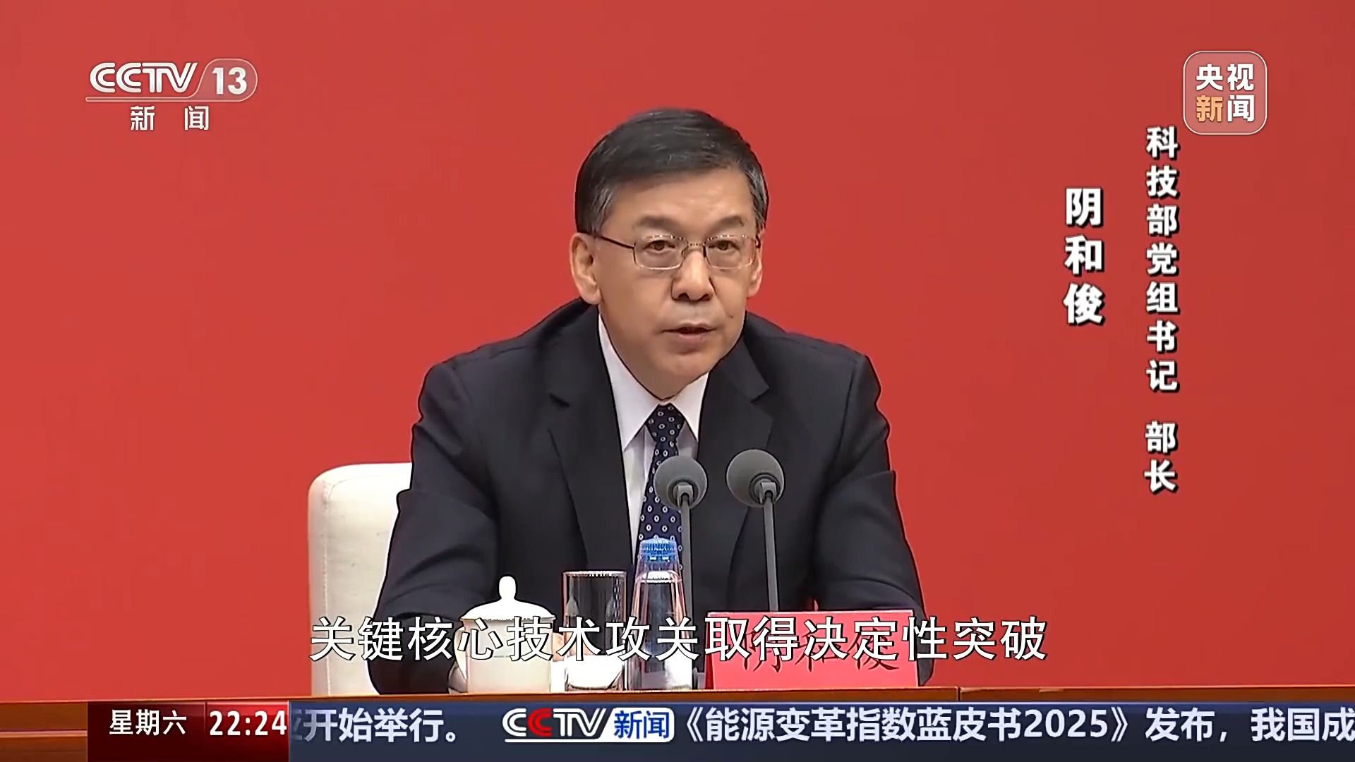 科技部党组书记部长 阴和俊:完善新型举国体制,全链条推动集成电路,工业母机,高端仪器等重点领域,关键核心技术攻关取得决定性突破。