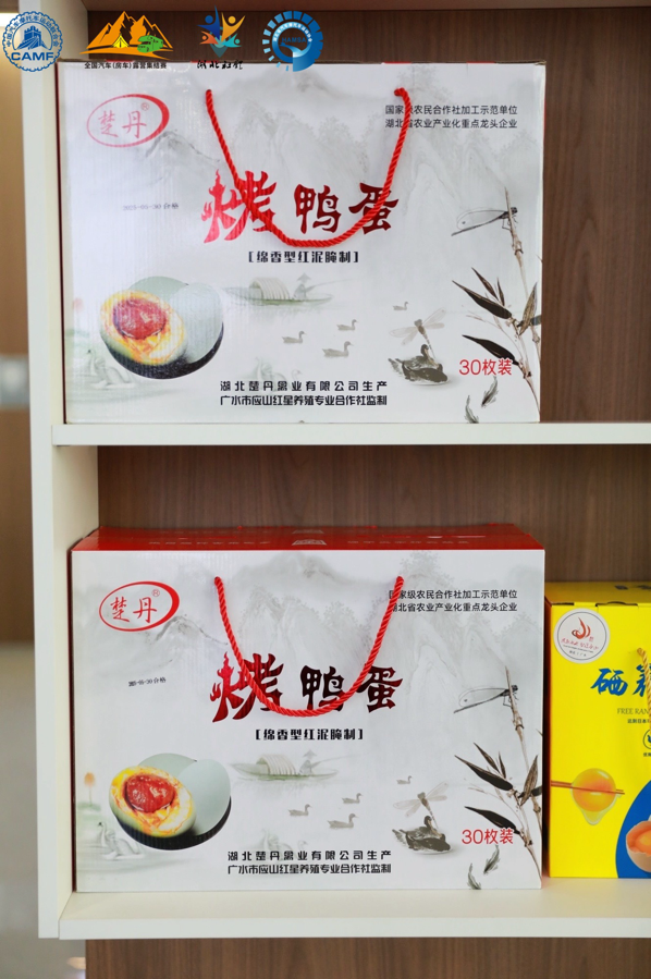赛程里的“中华山盟”赛段,成了非遗美食的“体验站”。在观音村,选手们围坐品尝省级非遗——马坪拐子饭:卤得油润软烂的猪脚,裹着浓郁卤汁,搭配喷香的白米饭与清爽小菜,一口下去,奔波的疲惫瞬间消散,能量满格。更贴心的是,主办方还在赛段旁设了农产品展销台,应山奎面的细腻、腐乳的醇厚、烤鸭蛋的咸香,让这些广水 “家常味” 成了车友们争相选购的 “香饽饽”。