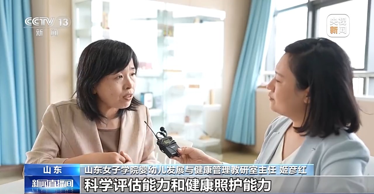 山东女子学院婴幼儿发展与健康管理专业教研室主任 姬彦红:首先要读懂孩子,他要具备这种科学评估能力和健康照护能力,比如营养配餐、疾病预防、急救安全,还有环境创设这方面的能力。学生未来能够有研究能力,比如说我们学生可以做一些行业的需求调研,比如家长到底需要什么样的托育机构,为上级部门一些制定政策的时候提供依据。