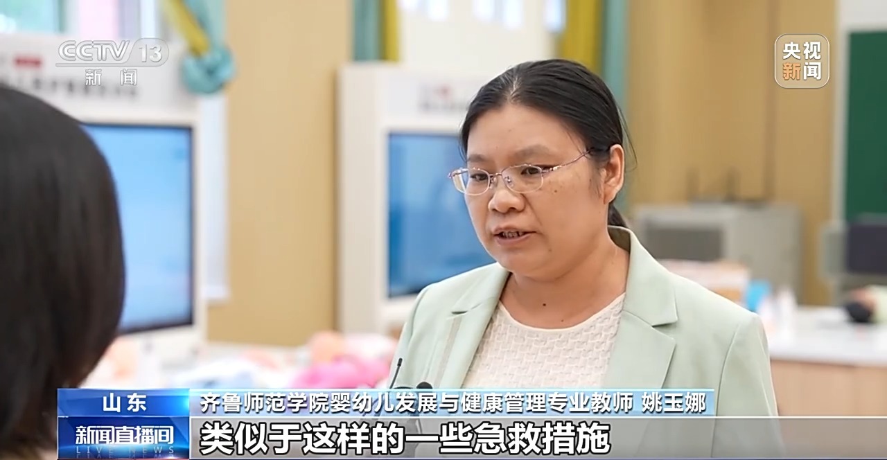 齐鲁师范学院婴幼儿发展与健康管理专业教师 姚玉娜:比方说心肺复苏、海姆立克急救法,擦伤、跌伤,还有鼻出血、烧烫伤等,类似于这样的一些急救措施,我们都会涉及。另外,比如说感冒发烧了、腹泻腹痛,这些常见的症状让他们识别。从传染病的预防、传染病的班级处理,都要给他们涉及。再就是小儿推拿这一块,给他们搭好一个医疗保障的知识框架。