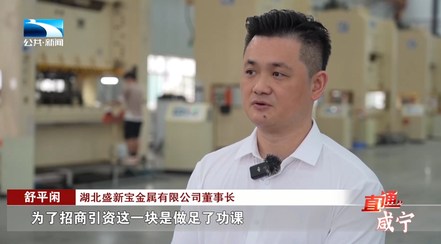 湖北盛新宝金属有限公司董事长 舒平闲:咸宁市市委包括咸安区委,为了招商引资这一块是做足了功课,对我们企业来说是“店小二”的服务模式,,随时有问题,马上组织会议立马解决。