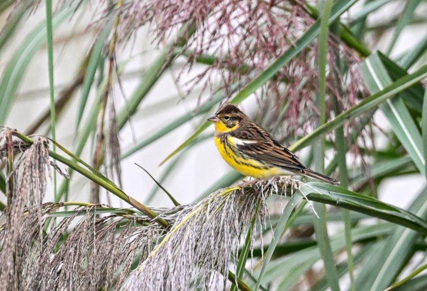 拍摄下这只黄胸鹀在芦苇丛中驻足、张望、梳理羽毛等一系列高清影像后,县野生动物保护站工作人员再次对影像资料进行了严谨的辨认与核实,确认该鸟为黄胸鹀。