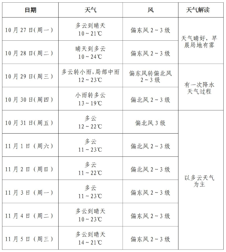以多云到晴天为主