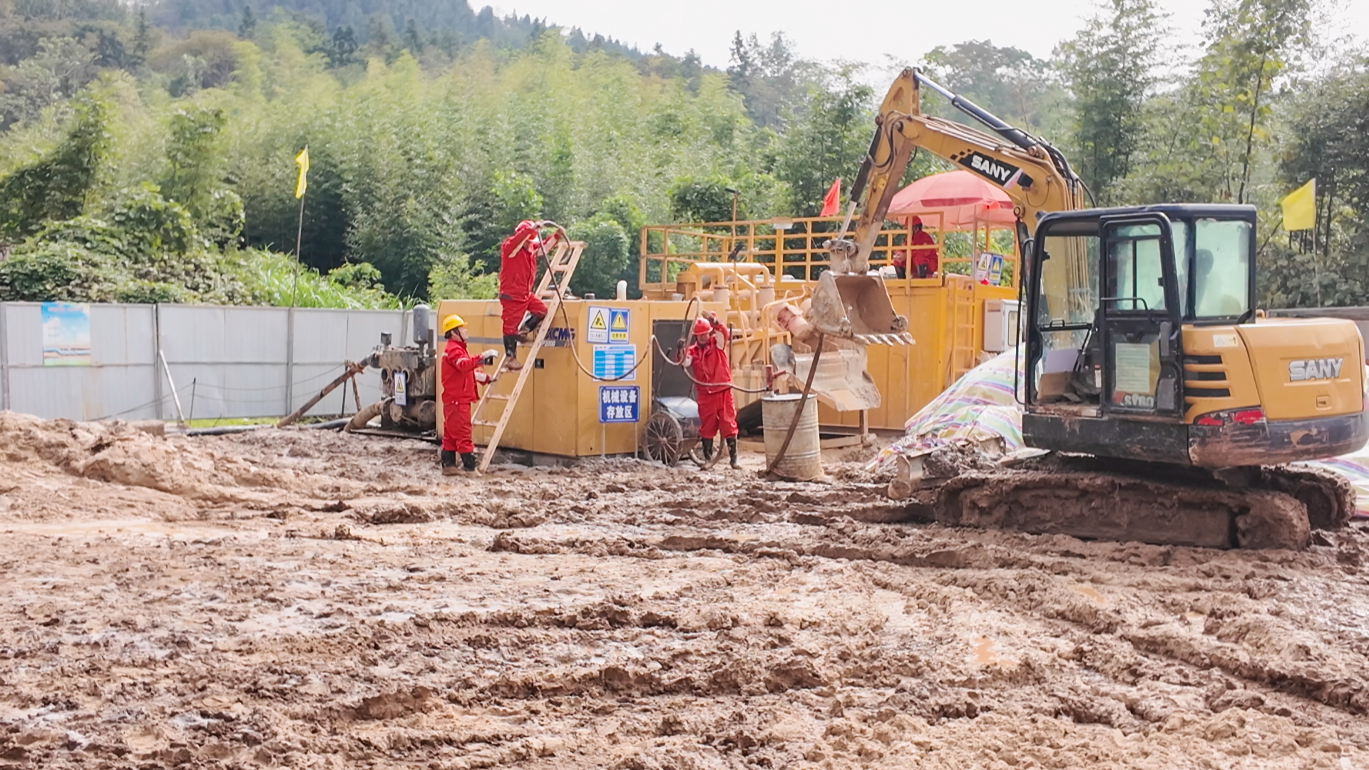 10月26日,在崇阳县桂花泉镇的吉家坡定向钻穿越工程现场,工作人员正在对山体进行定向钻穿越。由于山体地质条件复杂,对定向钻有极强的挑战。