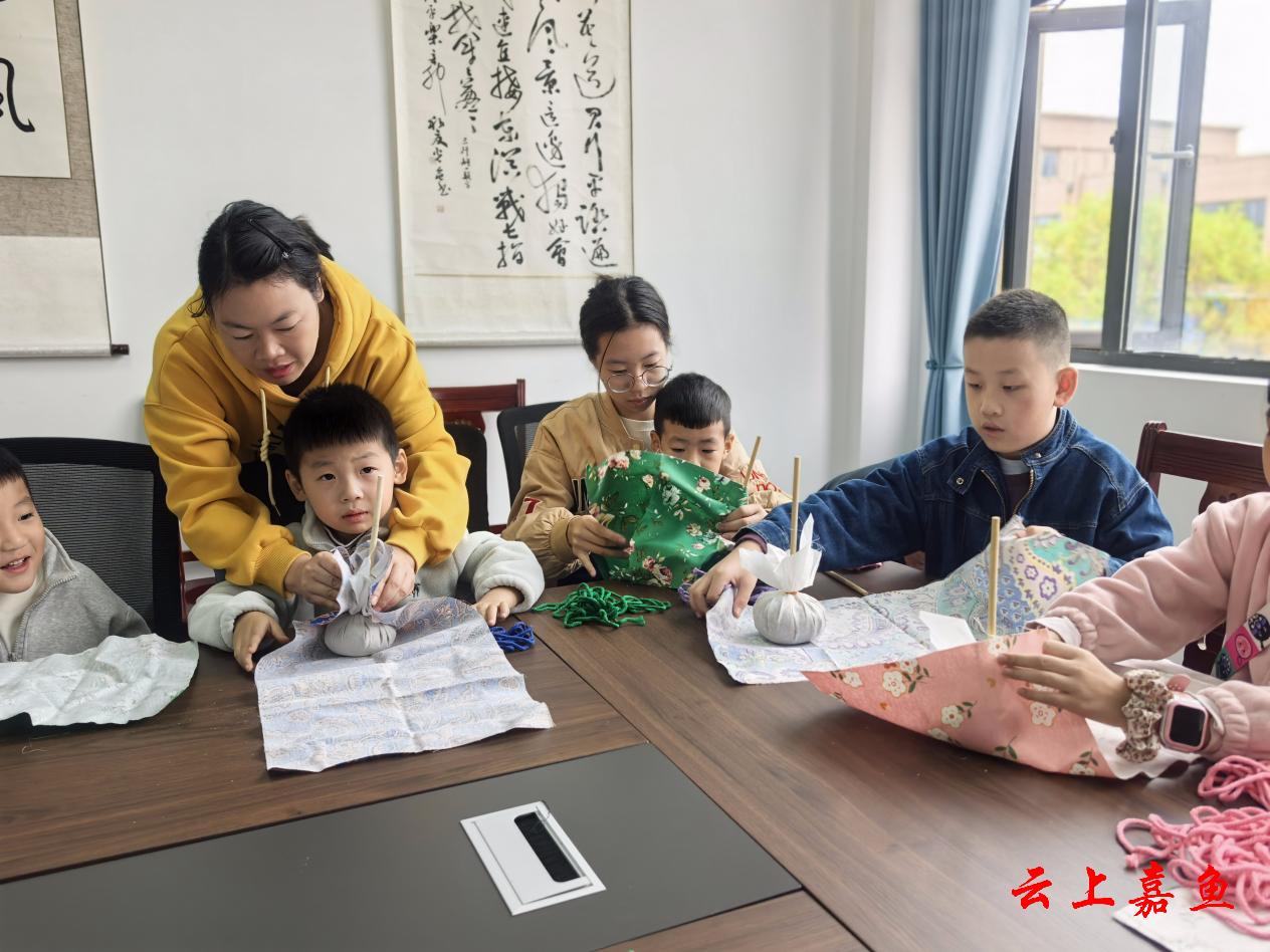 手工制作艾草锤环节更是暖意融融。社工提前备好晒干的艾草、棉布、棉线等,手把手教孩子们折叠布料、填充艾草、缠绕棉线。孩子们在家长的协助下,亲手将艾草填充、包裹、固定。这一过程不仅锻炼了孩子们的动手能力和协作精神,更在亲子互动中增进了情感交流。