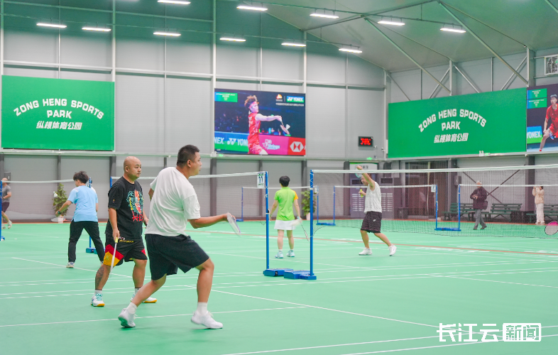建成后的纵横体育公园总面积约20123平方米,其中场馆占地面积15060平方米,以“自然运动、和谐共生”为设计理念,构建起一站式全业态体育主题园区。走进园内,标准化的综合运动场馆内,篮球、羽毛球、乒乓球等场地一应俱全,满足不同人群的运动需求;场馆外,咖啡厅、休闲餐吧等配套设施与绿植景观巧妙融合,既满足专业锻炼需求,也适合居民日常休闲放松。