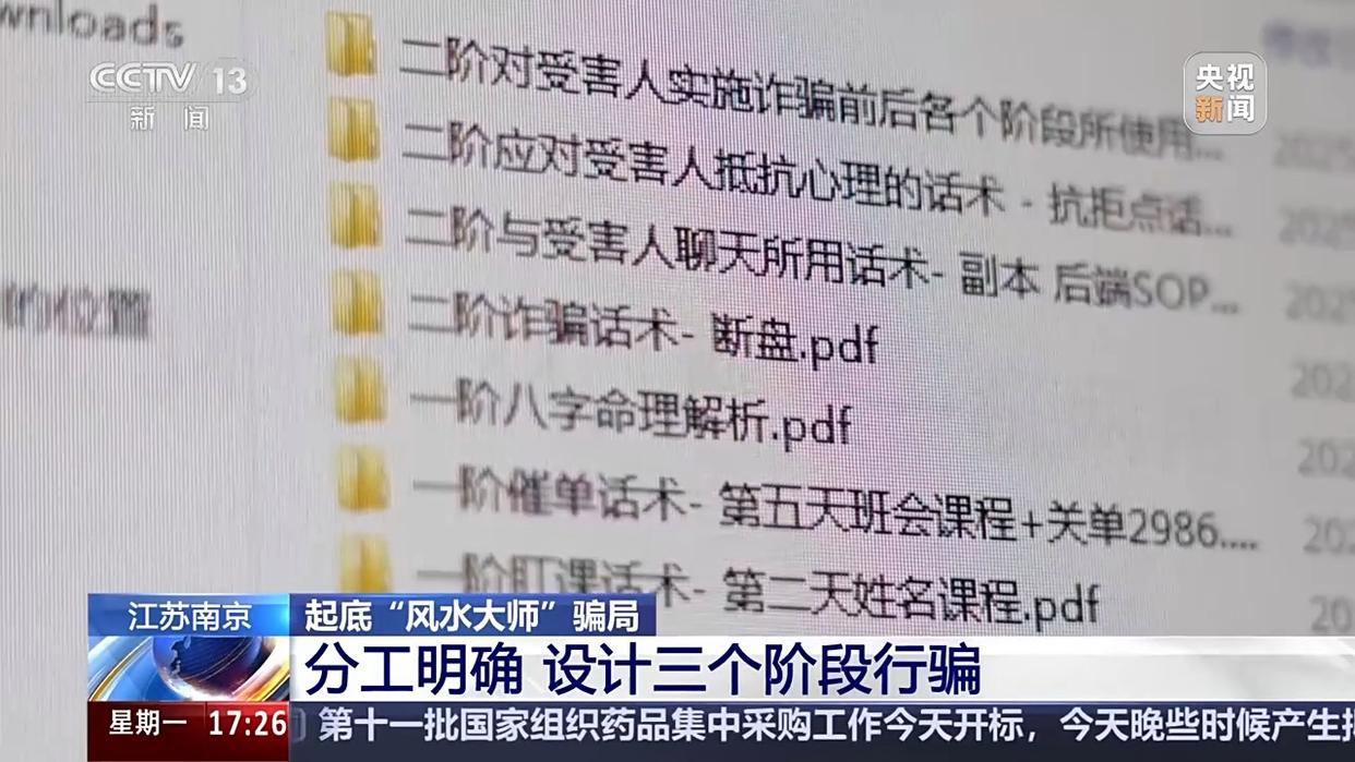 警方通过深入调查发现,嫌疑人团伙设计了一套完整的行骗流程,分工明确,分为三个阶段团队:“一阶”是通过诱骗受害人观看免费风水视频之后,兜售收费风水课程的引流团队。“二阶”则是核心的诈骗团队。