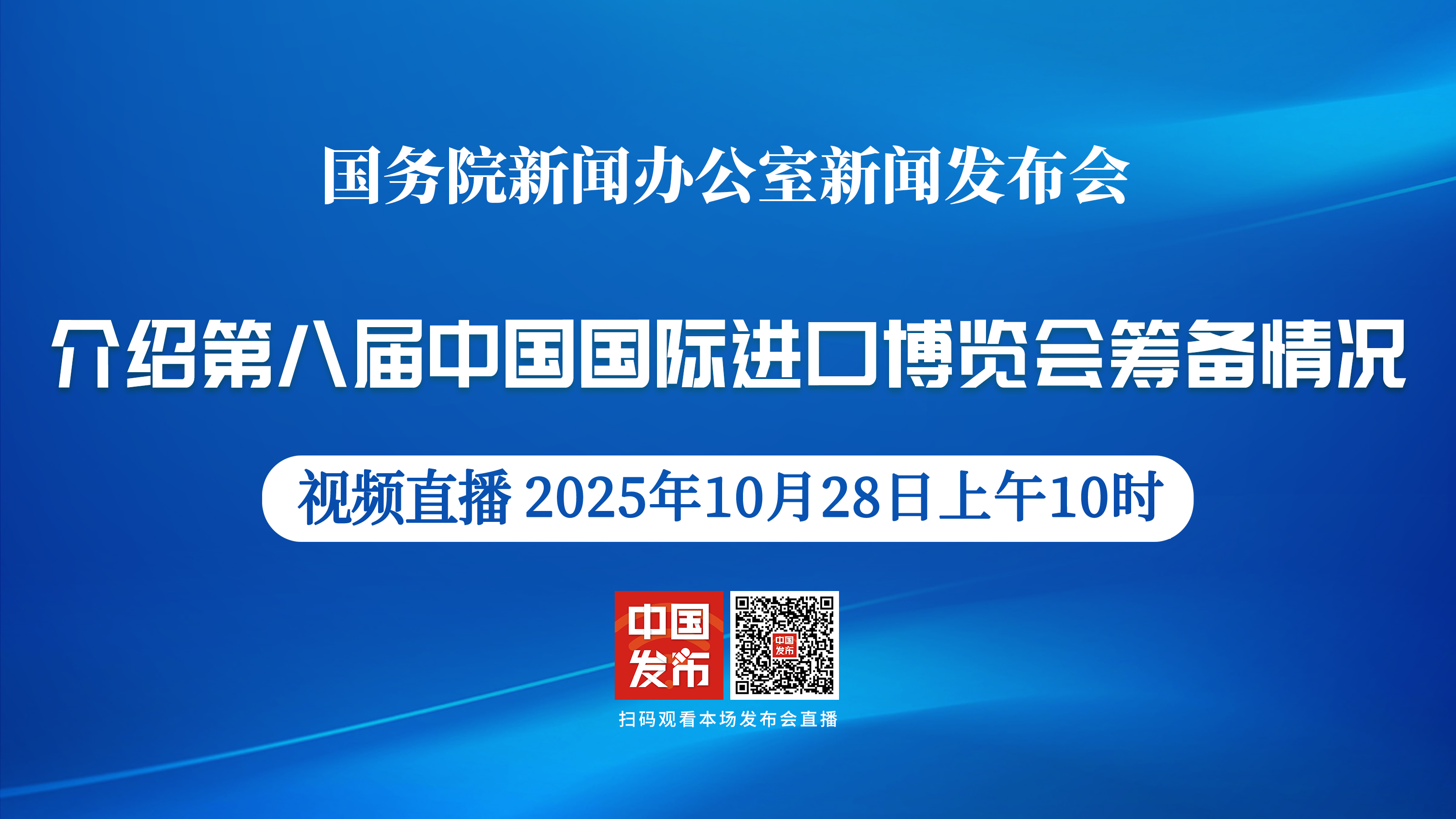国务院新闻办公室于2025年10月28日(星期二)上午10时举行新闻发布会,请商务部副部长盛秋平,上海市委常委、市委秘书长华源介绍第八届中国国际进口博览会筹备情况,并答记者问。