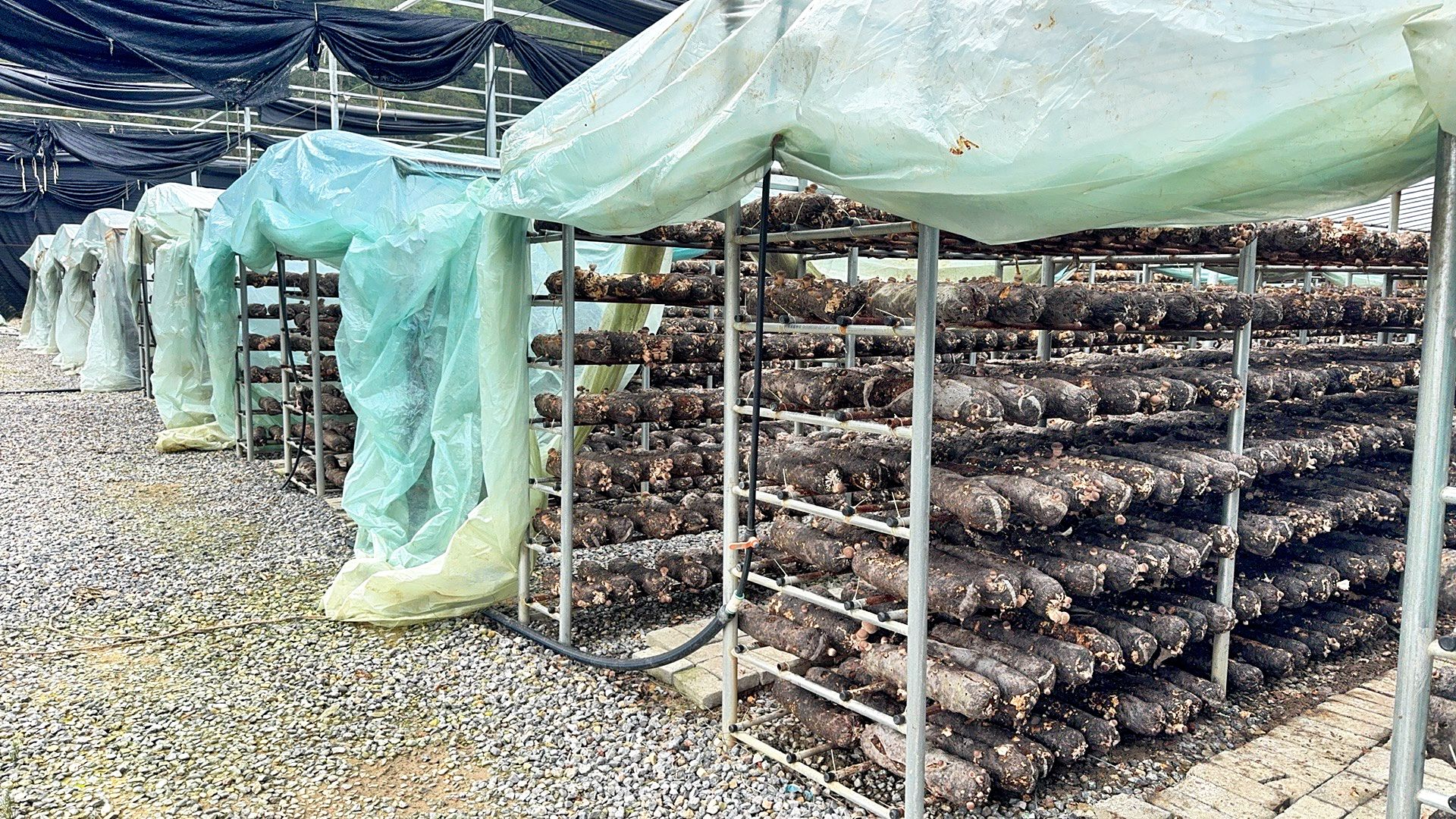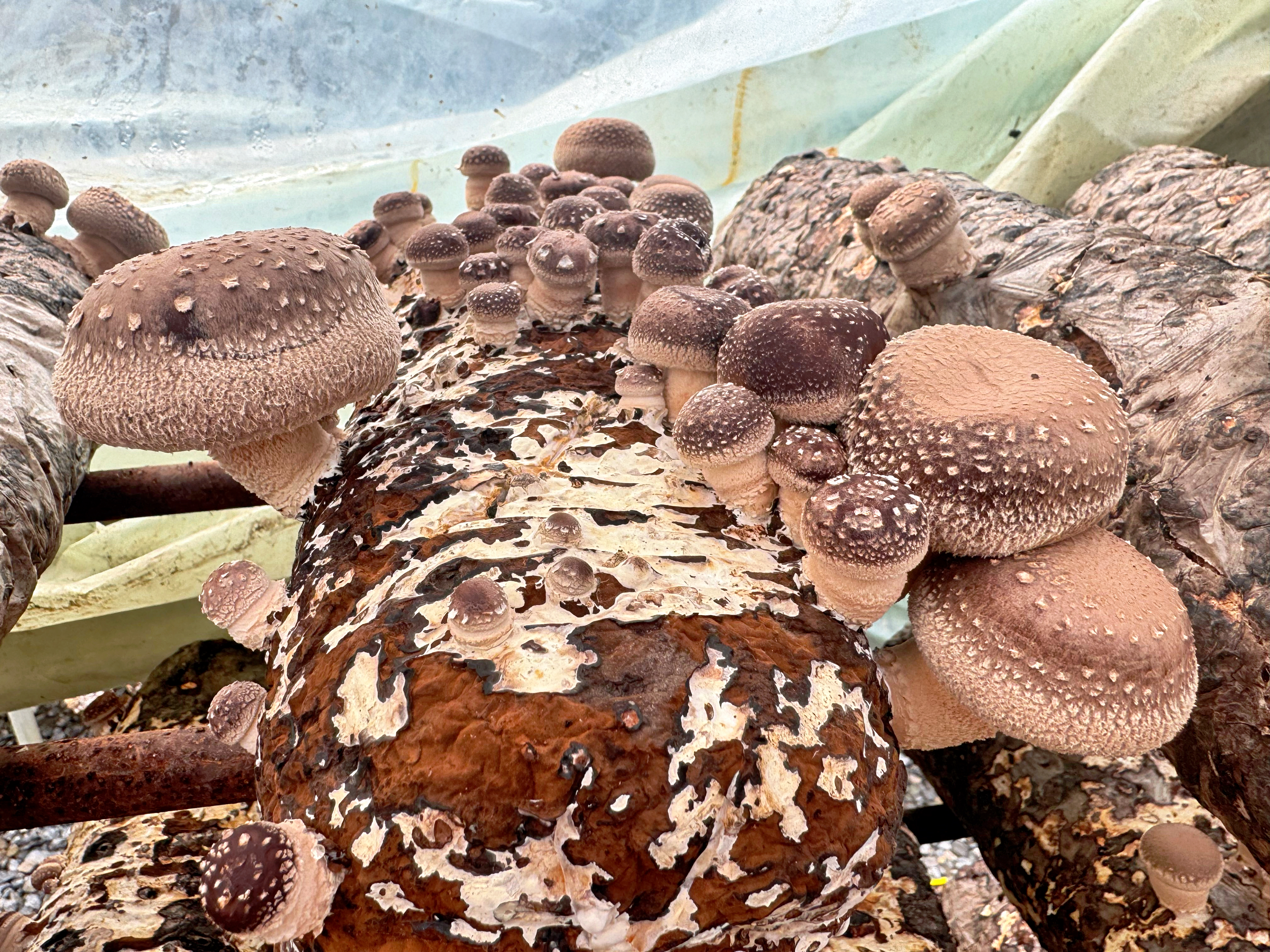 自点种完成后,香菇需要历经180天的生长周期,跨越夏秋两季。为了让香菇的口感和健康度均达到上乘,合作社负责人刘诚下足了“绣花功夫”。从源头把控品质方面,合作社严选营养配比精准的808号专用袋料作为基质,为香菇生长筑牢“营养基石”。在生长过程中,棚内全面采用遮阳控温、自动喷淋控湿等集成技术,精准调节光照、温度与湿度,将数值控制到适宜香菇生长的范围内,帮助它们渡过夏季高温、深秋雨季等生长难关。