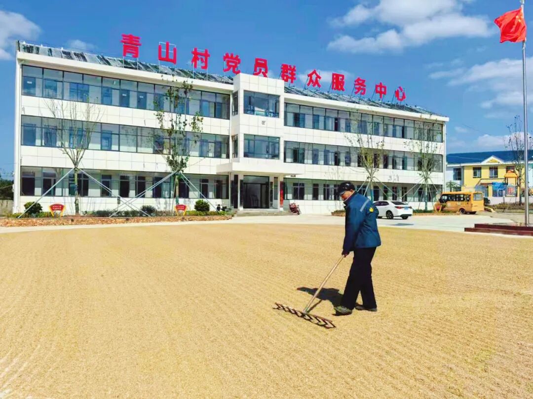 “今年家里种了一百多亩粮食,村委会门前广场修好后,晒谷方便多了。早上村干部看见我一个人忙,都过来帮我,真是省心得很!”在黄庙村文化广场晒谷的张小英笑着说道。