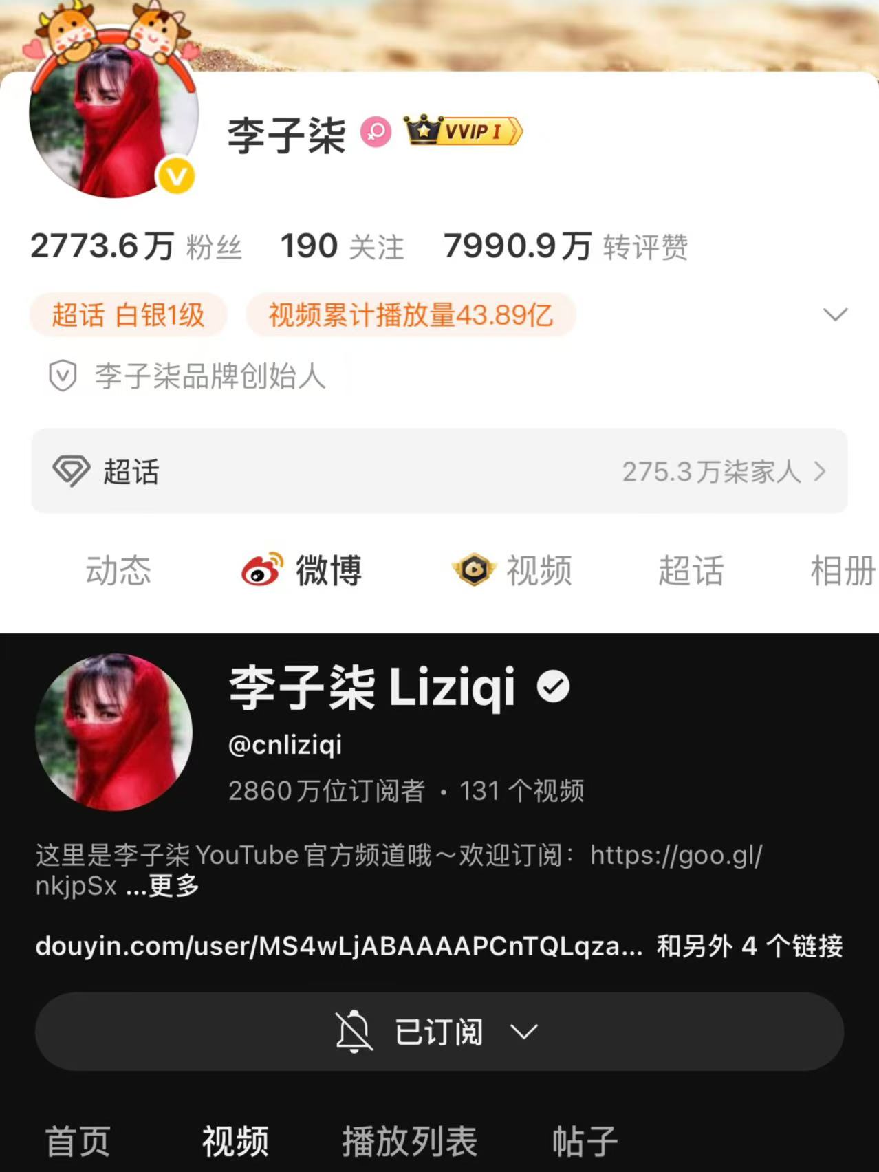 长江云新闻记者注意到,尽管长期未更新,李子柒在各平台的粉丝数依然维持在千万量级。截至目前,她在抖音平台拥有5920.2万粉丝,微博粉丝数为2773.6万,YouTube订阅量也超过2860万。