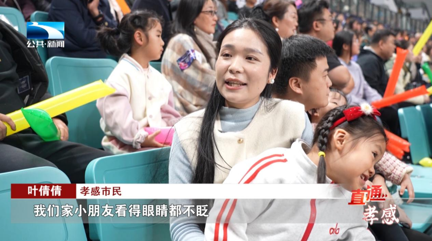孝感市民 叶倩倩:我们家小朋友看得眼睛都不眨,一直在喊加油,能够看到我们孝感本地这么多的球队比赛,感觉特别亲切,他们不只是打球,更是把整个孝南的活力都展现出来了。