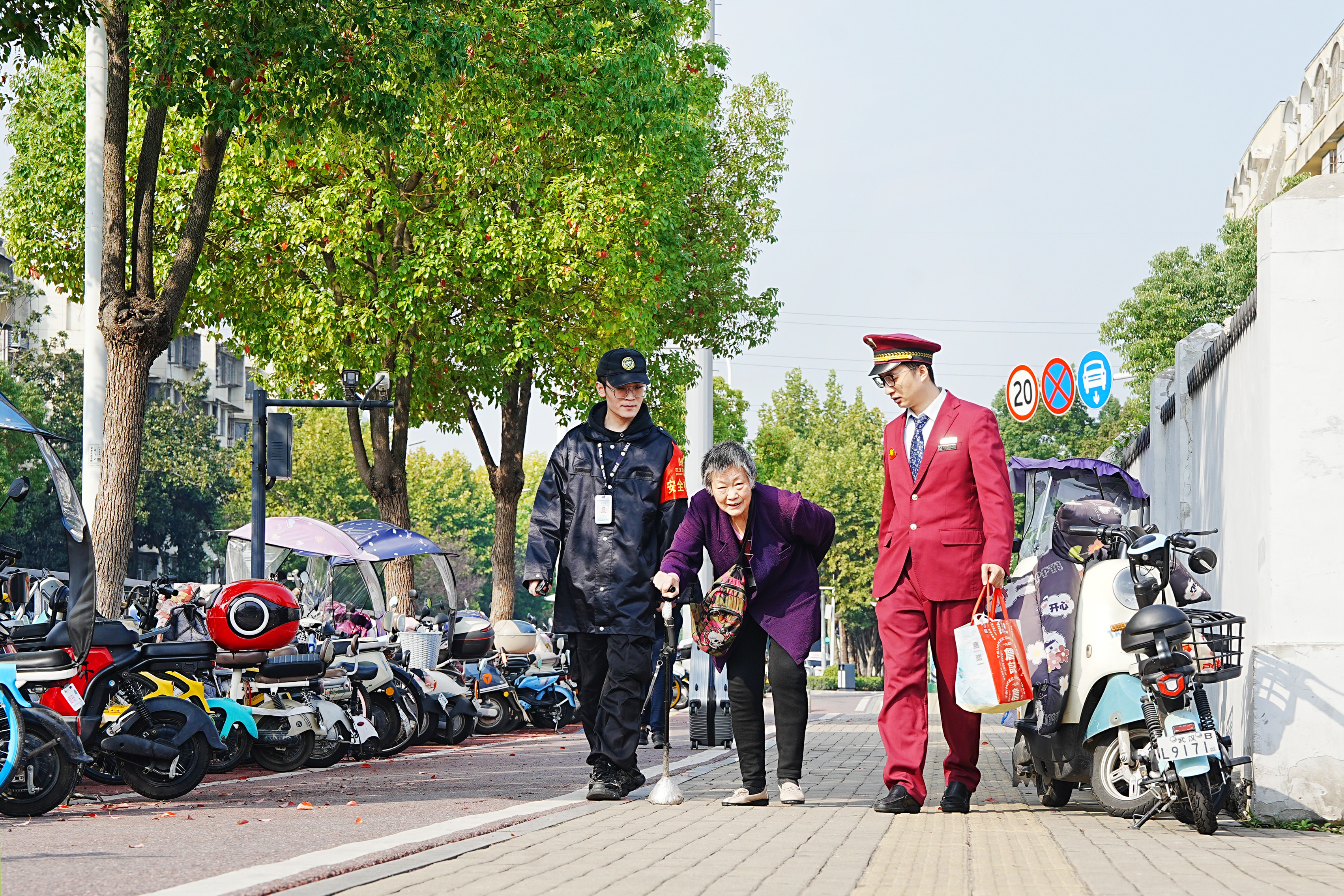 “丁奶奶是我们站的‘常客’,和我们的工作人员都很熟悉,还经常在出行途中亲切地聊上几句。”王健介绍,由于车站老年乘客较多,为确保他们安全顺畅出行,全站人员都已形成主动上前帮扶的习惯:见到行动不便的乘客,工作人员见到会主动上前扶一把;遇有需要联动帮扶的乘客,大家都会主动询问目的地,以便提供精准帮助;若遇到满载菜篮的小车等大件行李乘客乘坐电梯,他们发现后及时在身后静静守护。