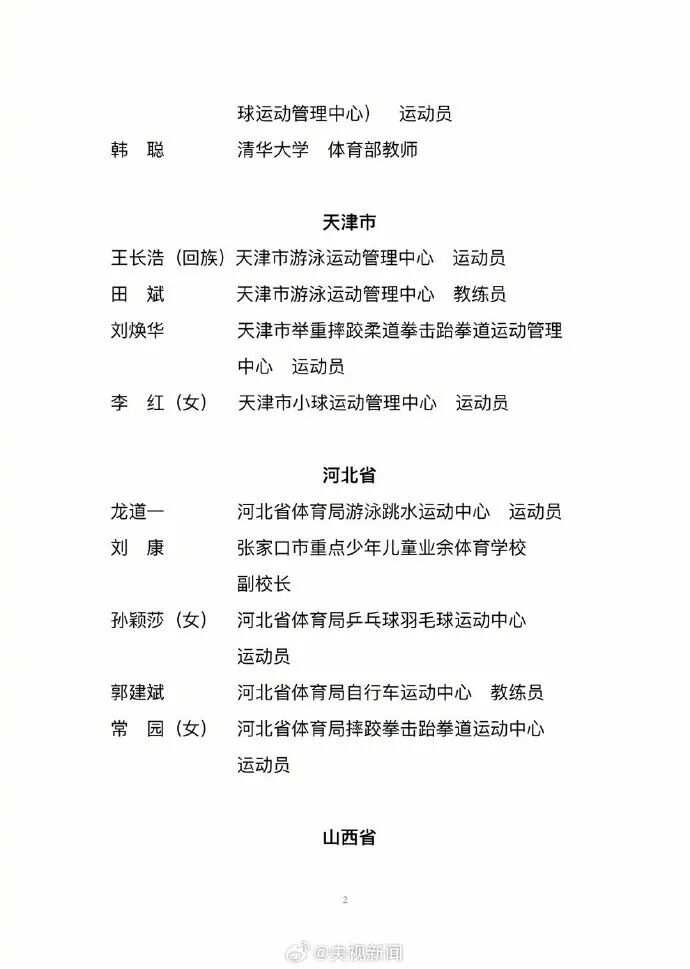 其中公示对象包含孙颖莎、樊振东、马龙、王楚钦、王曼昱、覃海洋、隋文静、武大靖、盛李豪、潘展乐、全红婵、陈芋汐、唐钱婷、张雨霏、王昶、梁伟铿、郑思维、黄雅琼、陈梦、郑钦文等运动员。