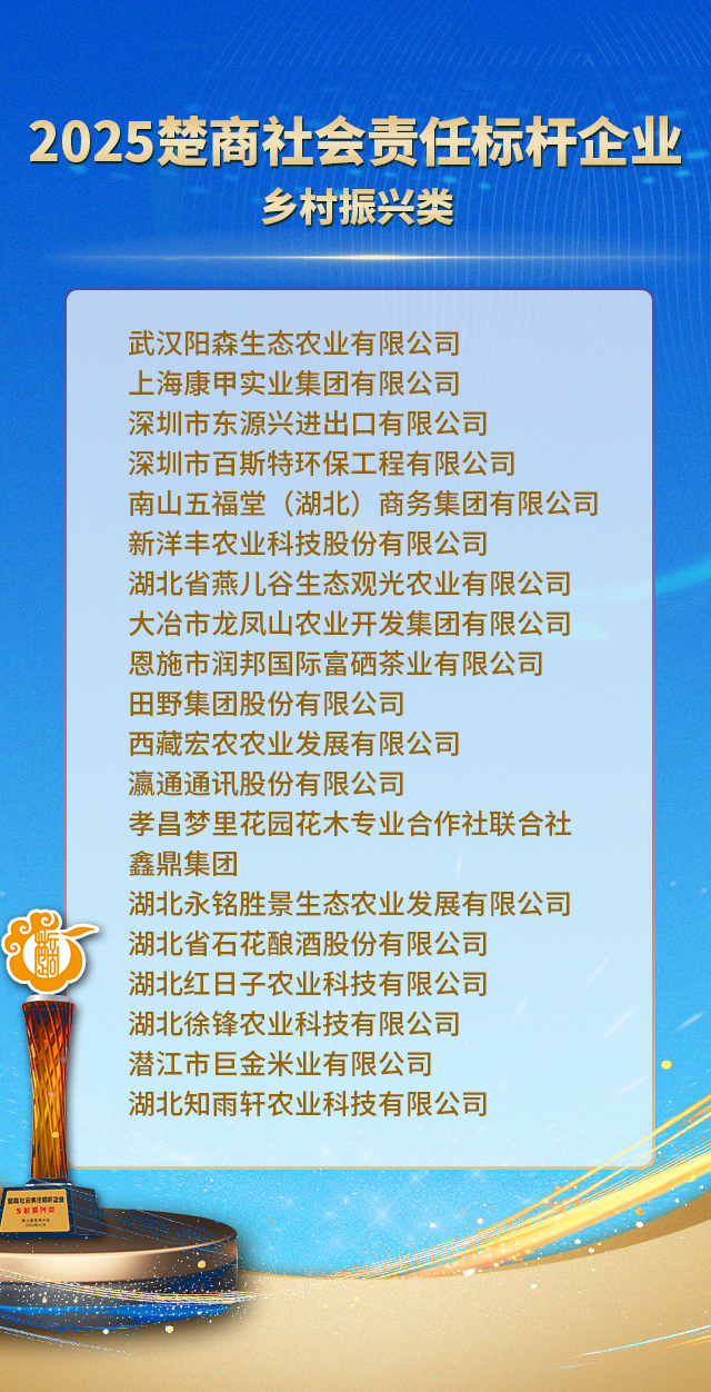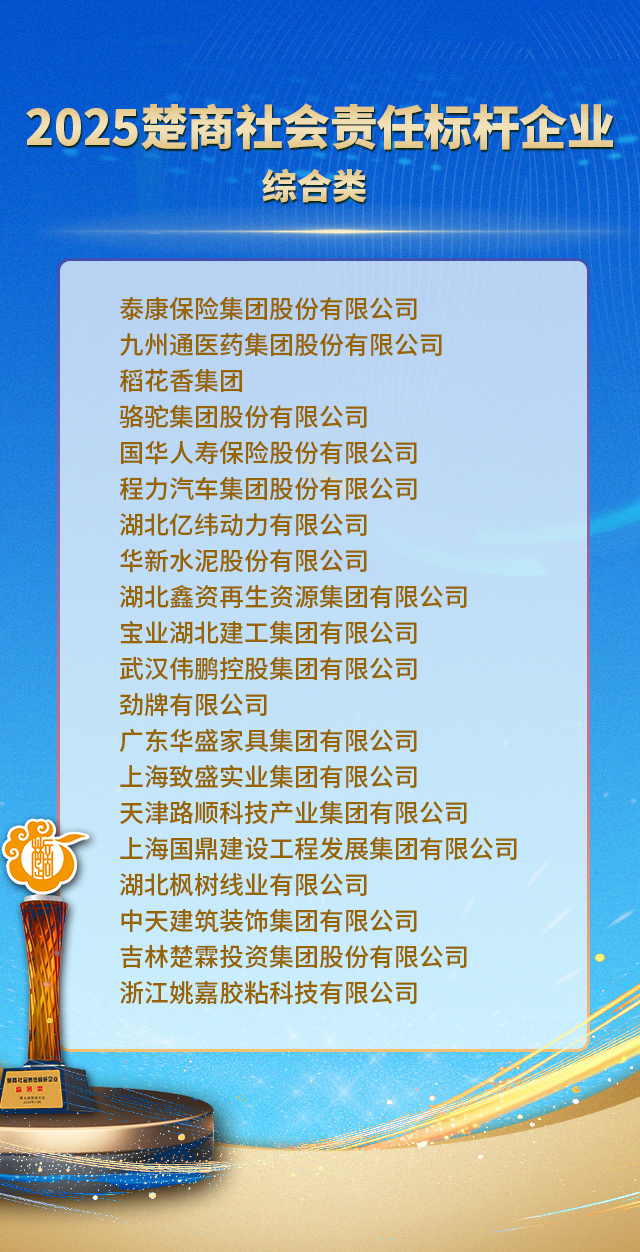 “楚商社会责任标杆企业”共100家,分五大类、各20家,具体如下: