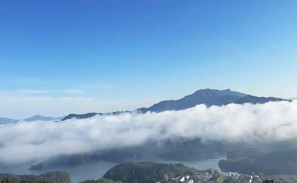 清晨的观音湖最懂“藏锋”的智慧。连绵山脉在云海中若隐若现,流云像极了大片留白的东方美学。在观音湖邂逅云海的那一刻,我终于信了,中国山水画从来都是写实的。