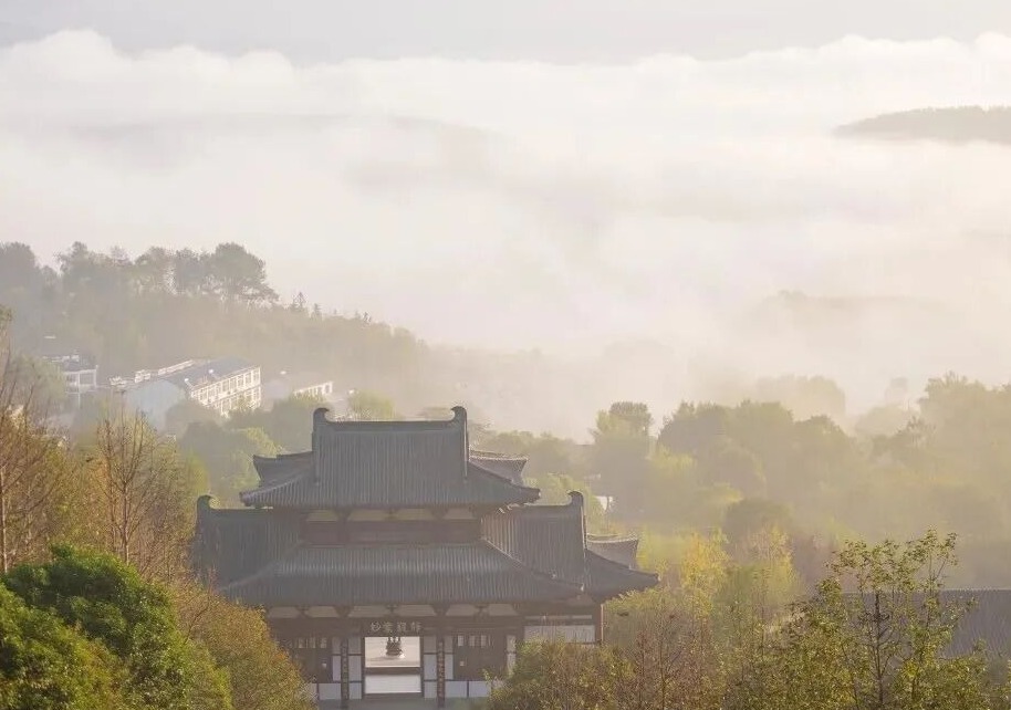 流连于秋叶环抱的红墙下,可悟“早霜浓著瓦”的温润;登临观景台眺望云海,可体验“青霭入看无”的空灵……