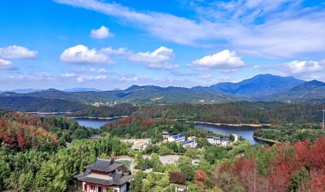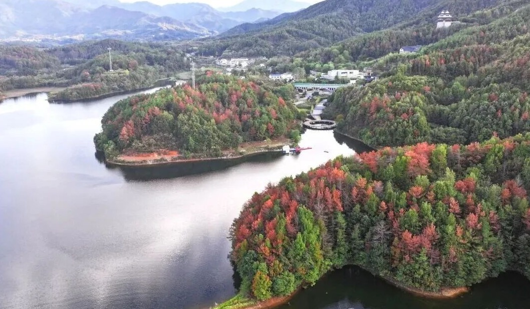 若说云海是观音湖含蓄的序曲,那漫山秋色便是它低调而惊艳的华章。松柏仍坚守着苍翠的底色,如同衣橱里那件永不过时的深色西装,为秋日定下沉稳的基调。