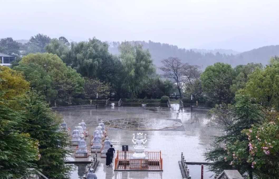 漫步雨后山径,可品“空山新雨后”的清寂;静观殿宇披霞,可感“邃阁媚朝光”的恢弘。