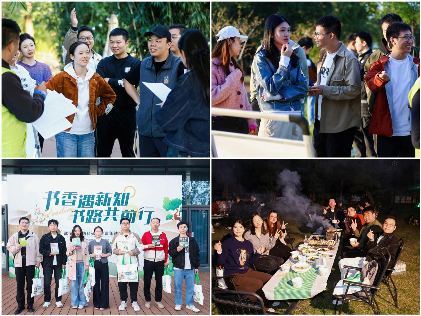 东湖友格岛三面环湖的自然景观,为参与青年提供了惬意的交流环境,大家在阅读间隙漫步湖畔,共赏秋日湖景;自助烧烤环节食材丰富,兼顾不同饮食习惯;未使用的活动代币可兑换定制书签、经典名著手册等文创纪念品;活动尾声还特别设置共赏烟花活动,进一步营造了温馨融洽的现场氛围。