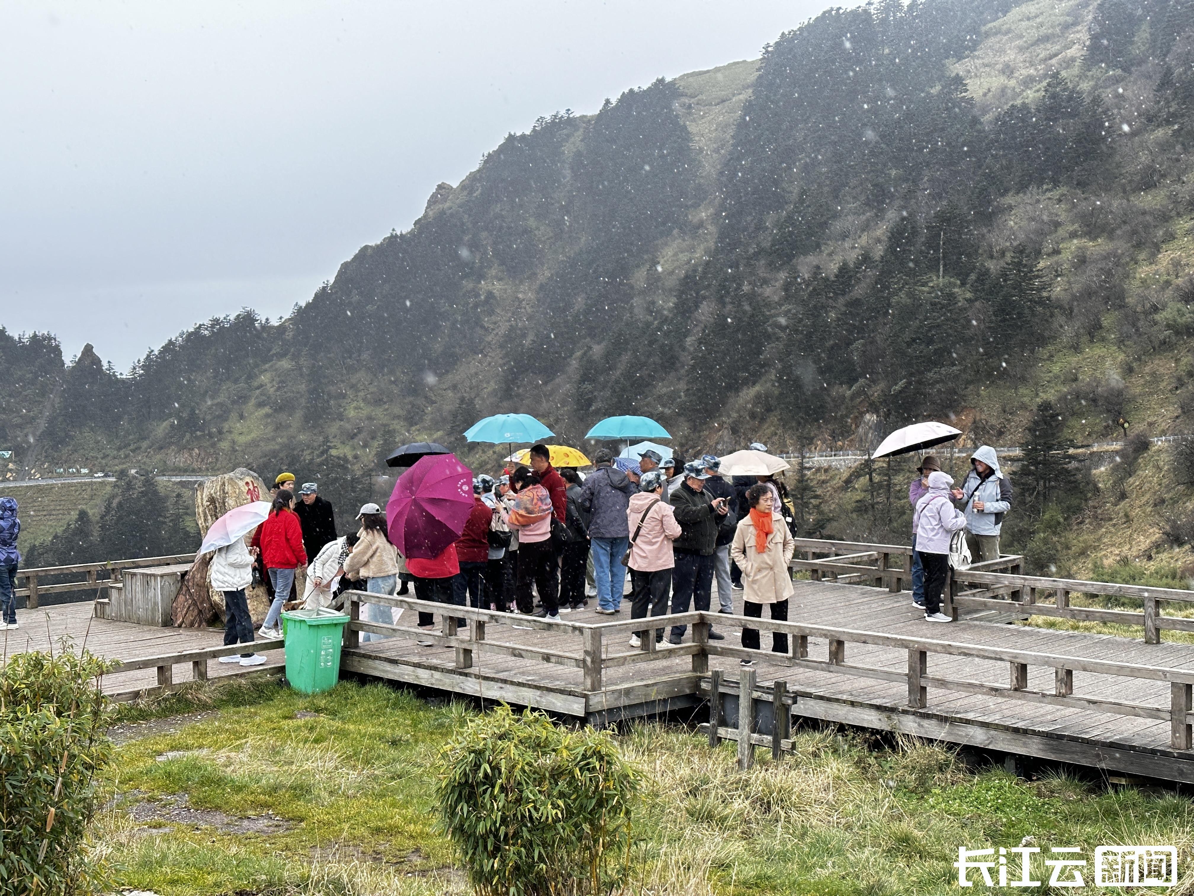 10月29日,受强冷空气影响,神农架林区高海拔区域迎来今年下半年首场降雪。洁白的雪花纷纷扬扬地洒落,与神农架的秋色相互交织,形成了一幅如梦如幻的绝美画卷。这场突如其来的秋雪,吸引了众多游客的目光,他们纷纷惊叹于这大自然神奇的造化,驻足观赏、拍照留念,想要将这难得一见的奇妙景象永远定格。
