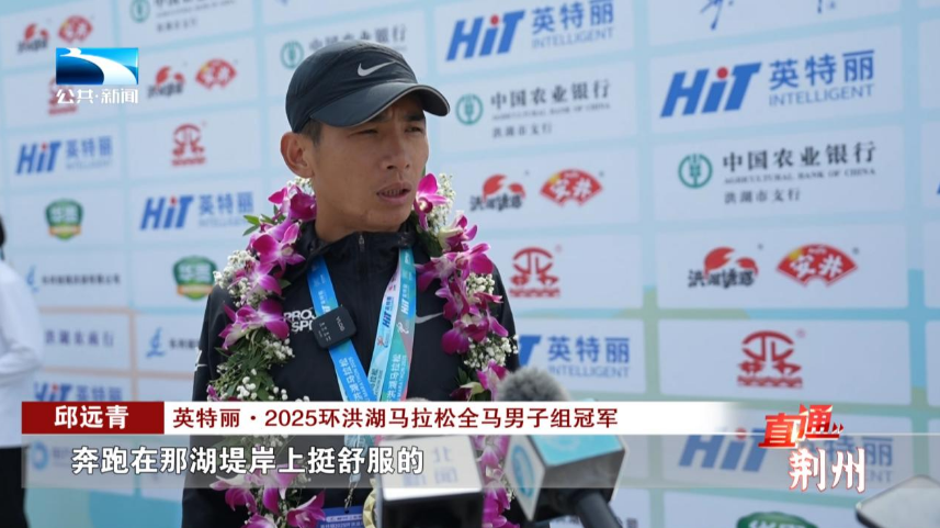 英特丽·2025环洪湖马拉松全马男子组冠军 邱远青:奔跑在那湖堤岸上挺舒服的,观众很热情,湖堤岸上的风景很美。
