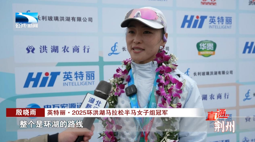 英特丽·2025环洪湖马拉松半马女子组冠军 殷晓雨:整个是环湖的路线,特别是跑在湖边,绿道两旁有鲜花,特别好,跑在那里的时候就会很沉浸在这种美景当中。