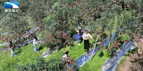 在恩施州巴东县沿渡河镇海拔1300多米的高山上,漫山的苹果树郁郁葱葱,饱满的果实裹着鲜红“外衣”,在阳光下熠熠生辉。游客们穿梭在果树间,亲手采摘新鲜苹果,在果香与绿意中享受田园乐趣。