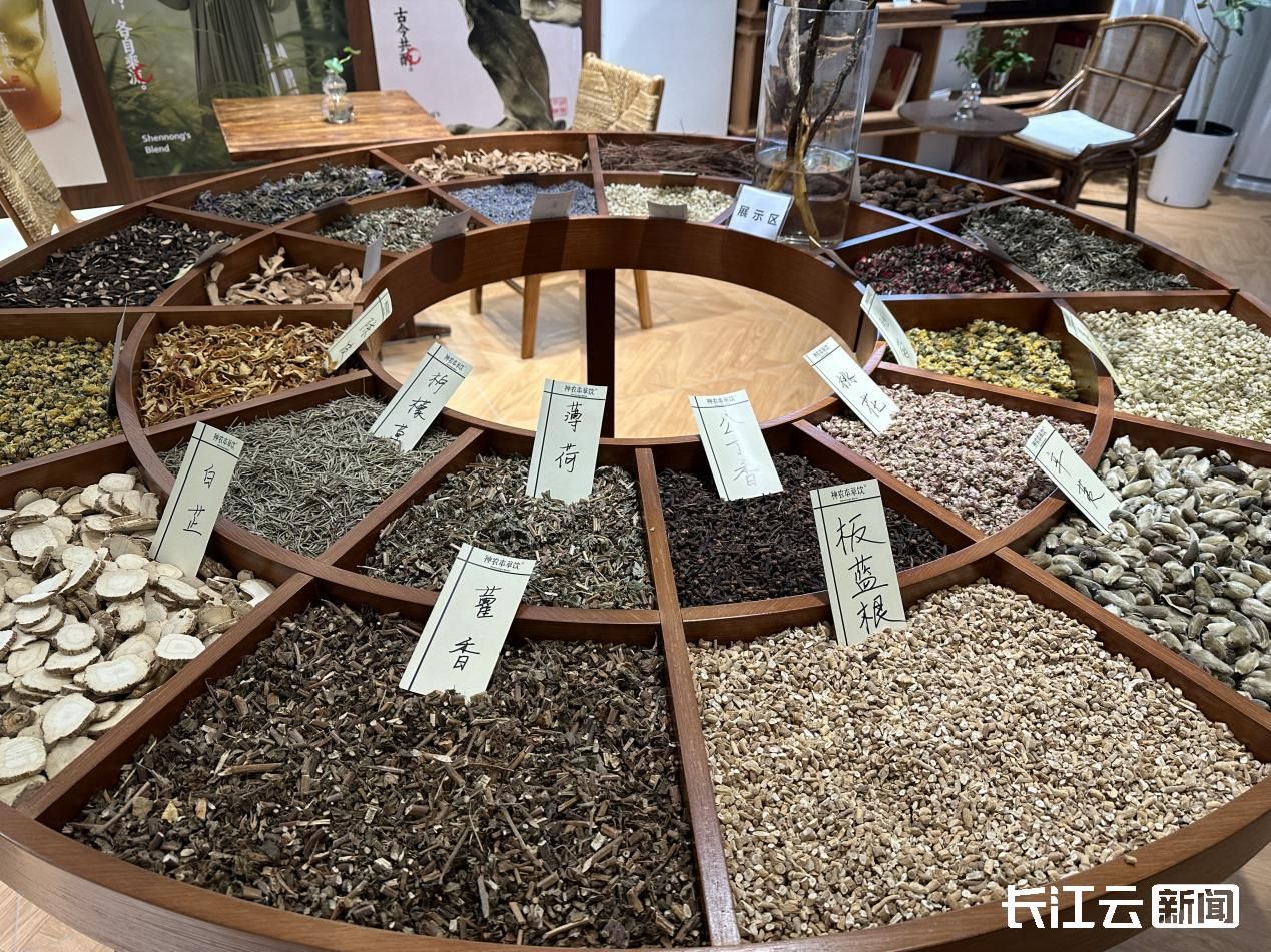 德国旅行商亚历山大・哈森对着奶茶原材料格外感兴趣:“太神奇了,这些食材都能做成茶!我一直喜欢中国茶文化,今天才知道茉莉花能泡茶,香气太迷人了。”店长刘丽丽趁机介绍景区特色饮品:“这杯是‘炎帝四神汤’,用茯苓、莲子、山楂、陈皮熬制,能祛湿健脾;喉咙干疼还能喝冰糖雪梨汤。”经导游翻译后,更多国际友人扫码下单,希望把这份“养生美味”分享给家人。