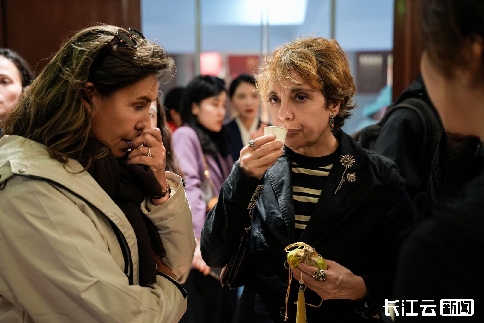 在景区“神农百草饮”体验点,旅行商们初尝特调“神农奶茶”便赞不绝口——这杯融入中药材、水果与干花的饮品,让大家秒变“夸夸团”。“味道很特别,第一次喝到加了中国中草药和花的奶茶!” 有人边品边感叹,不少人当场购买茶包,想把这份独特风味带回家。
