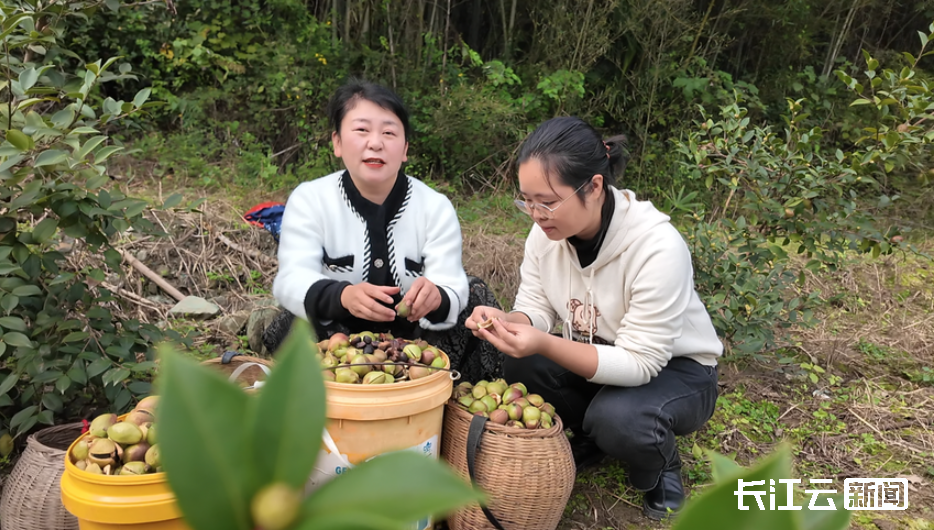 据了解,野生山茶树当年10月底开花,到次年10月底采果。由于果实生长周期长,采摘的油茶果经过晾晒去皮、脱壳、粉碎、蒸馏和机械压榨,最终酿出茶油,具有较高的营养价值。