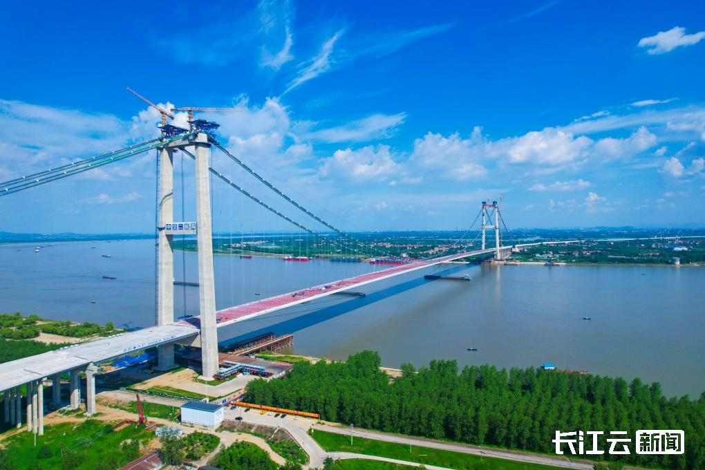 2025年7月,武汉“东大门”的双柳长江大桥施工现场,随着最后一片钢箱梁精准吊装到位,这座长江上最宽的钢箱梁悬索桥顺利合龙。此时,江面下一群“水中大熊猫”——长江江豚也不时跃出水面,仿佛在为大桥的合龙喝彩。