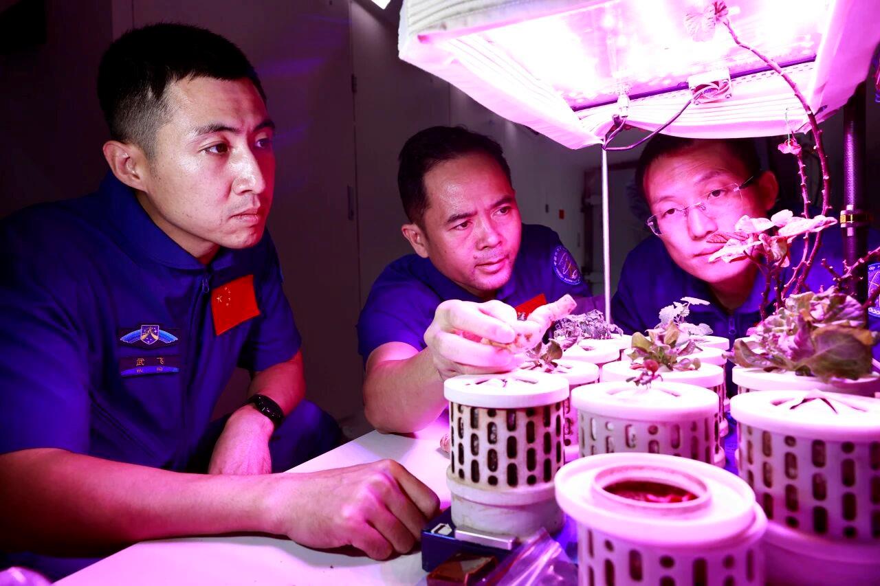 △神舟二十一号乘组在进行植物培养训练